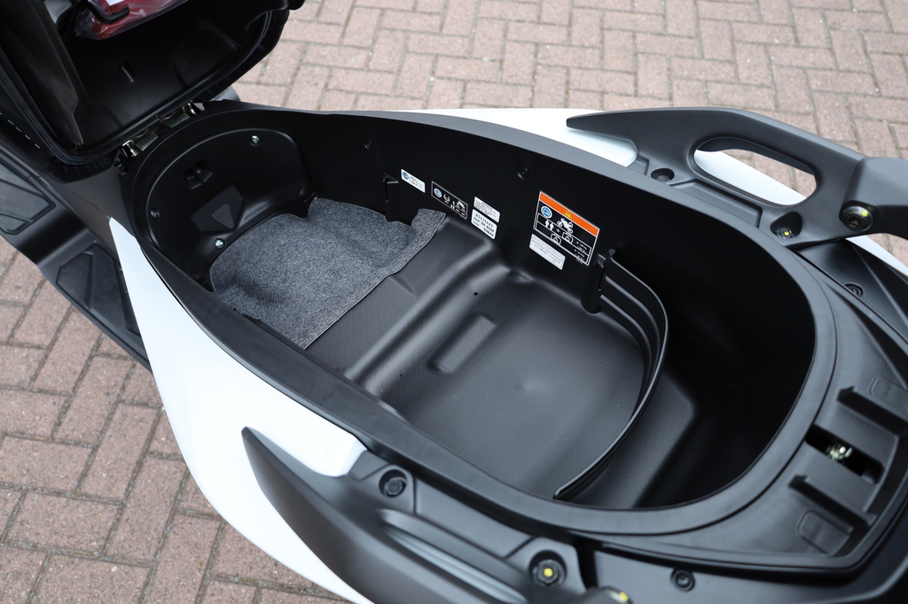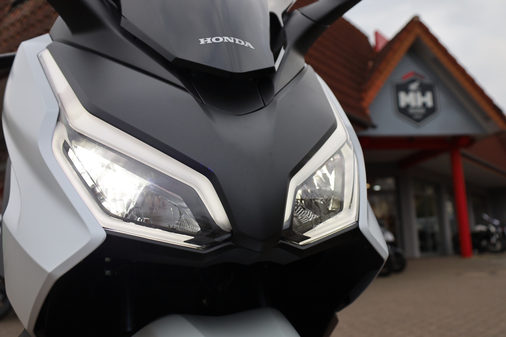 Zur Ausstattung gehören sicherheitsfördernde HSTC-Traktionskontrolle, elektrisch verstellbare Windscheibe, USB-Anschluss, Stauraum unter der Sitzbank (jetzt mit Innenbeleuchtung) für zwei Integralhelme, LED-Lichttechnik rundum und Smartkey-Bedienung.